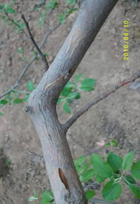 3、刮除病斑。在休眠期刮掉病粗皮,集中燒毀。亦可在7~8月重刮皮。
