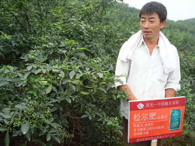 青花椒的施肥量: 不同生長時期對肥料的需求量有一定的差異。歸納為每年苗期需要純氮20-40g、純磷10-20g、純鉀10-20g、有機肥1-2kg;每年盛產期青花椒樹需要純氮200-400g、純磷100-200g、純鉀200-400g、有機肥2-10kg,另外青花椒果實對鈣的需求量較大,在收獲前其對鈣的需求量是所有養分中的最大量,每年的補充量基本相當于純磷的需求量即100-200g。