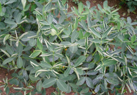 發病規律:病菌以菌核或菌絲在土壤中或病殘體上越冬,可以存活5-6年,大部分分布在1~2cm的表土層中。以菌核在2.5cm以下發芽率明顯減少,在土中7cm處幾乎不發芽。翌年菌核萌發,產生菌絲,從植株根莖基部的表皮或傷口侵入,也可侵入子房柄或莢果。種子也可帶菌。病菌在田問靠流水或昆蟲傳播蔓延。高溫、高濕、土壤粘重、排水不良、低洼地及多雨年份易發病。雨后馬上轉晴,病株迅速枯萎死亡。連作地、播種早的發病重。