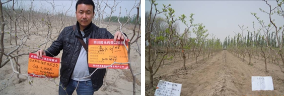 2014年5月,在新疆阿克蘇溫宿紅旗坡杜明超,陸地灰棗園使用國光優豐1000倍+國光稀施美500倍,在萌芽期全株噴施一次,棗樹樹體抗凍能力增強,提前萌芽3—5天,芽壯出芽整齊。