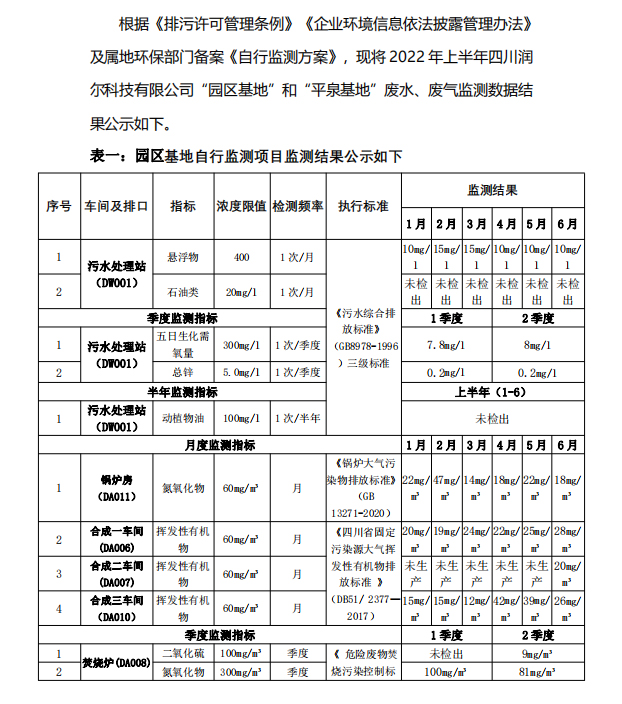 當前位置:網站首頁 > 新聞資訊 > 四川潤爾科技有限公司自行監測信息公示