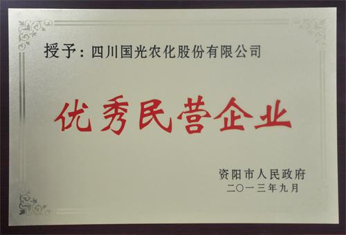 為表?yè)P(yáng)先進(jìn),樹(shù)立典型,做大做強(qiáng)民營(yíng)企業(yè),推動(dòng)民營(yíng)經(jīng)濟(jì)大發(fā)展、大提高,資陽(yáng)市人民政府于2013年9月29日召開(kāi)會(huì)議,對(duì)四川國(guó)光農(nóng)化股份有限公司等20戶(hù)“優(yōu)秀民營(yíng)企業(yè)”予以表彰。 同時(shí),會(huì)議要求各級(jí)各部門(mén)解放思想、更新觀念,保證民營(yíng)企業(yè)依法平等使用生產(chǎn)要素、公平參與市場(chǎng)競(jìng)爭(zhēng)、同等受到法律保護(hù),進(jìn)一步激發(fā)民營(yíng)經(jīng)濟(jì)的創(chuàng)造活力和巨大潛力,把民營(yíng)經(jīng)濟(jì)打造為資陽(yáng)市經(jīng)濟(jì)增長(zhǎng)的主體力量。
